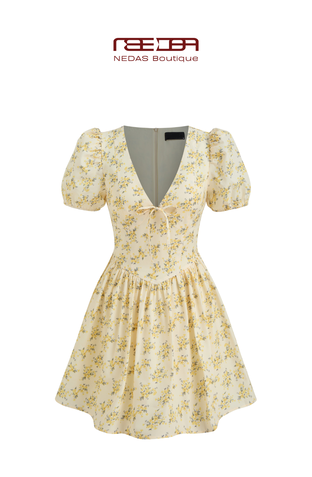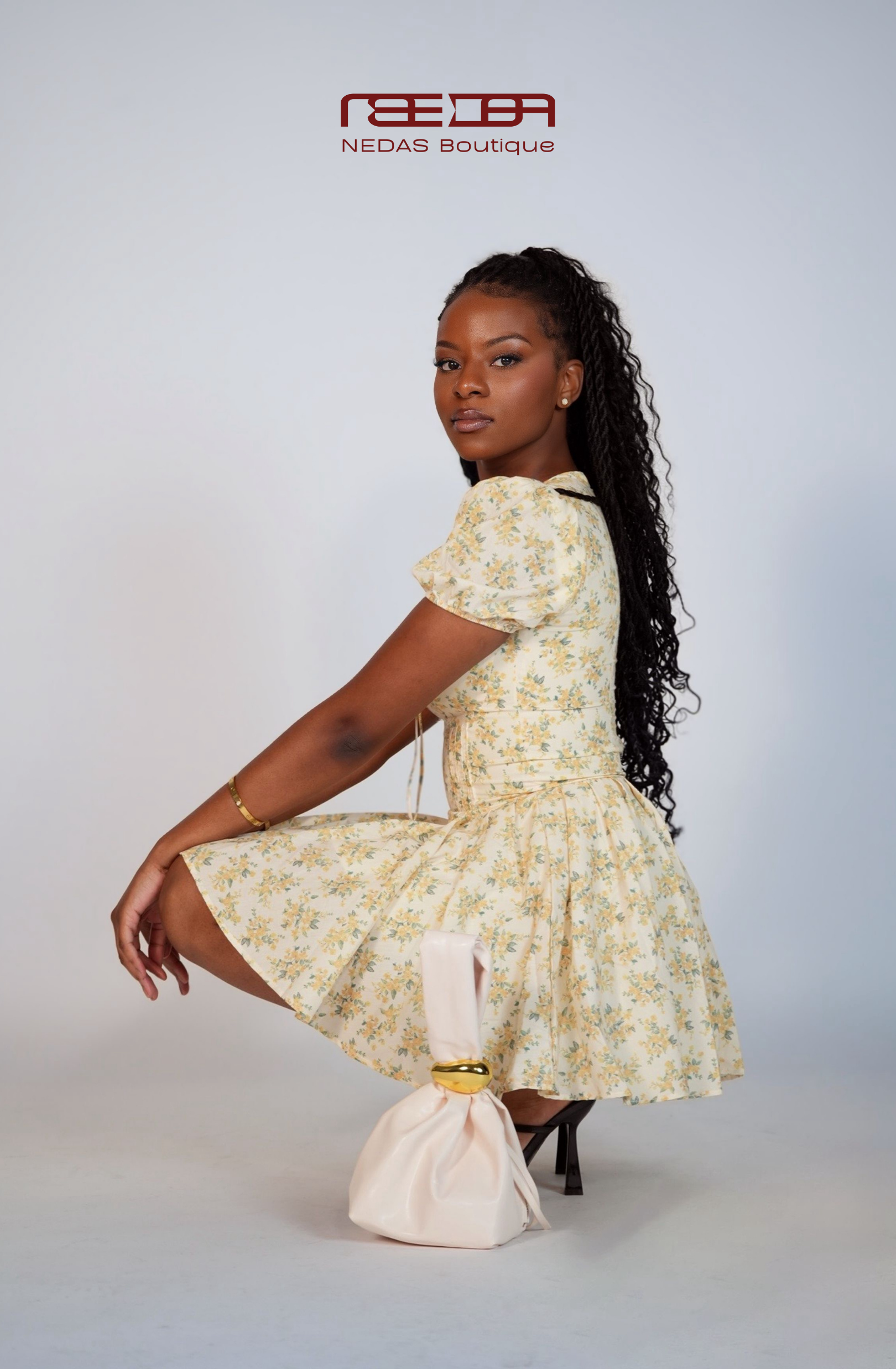 Stella ist pure Lebensfreude in Stoff gefasst. Das sonnige Gelb mit floralem Muster zieht sofort alle Blicke auf sich. Puffärmel und der schwingende Minirock verleihen dem Kleid einen verspielten Charakter. Trotz seiner Leichtigkeit strahlt Stella Selbstbewusstsein aus. Der figurfreundliche Schnitt sorgt für einen perfekten Sitz, während der hochwertige Stoff für Komfort und Langlebigkeit steht. Ideal für sommerliche Tage, Gartenpartys oder City-Trips. Stella zeigt, dass feminine Verspieltheit und Stärke Hand in Hand gehen.