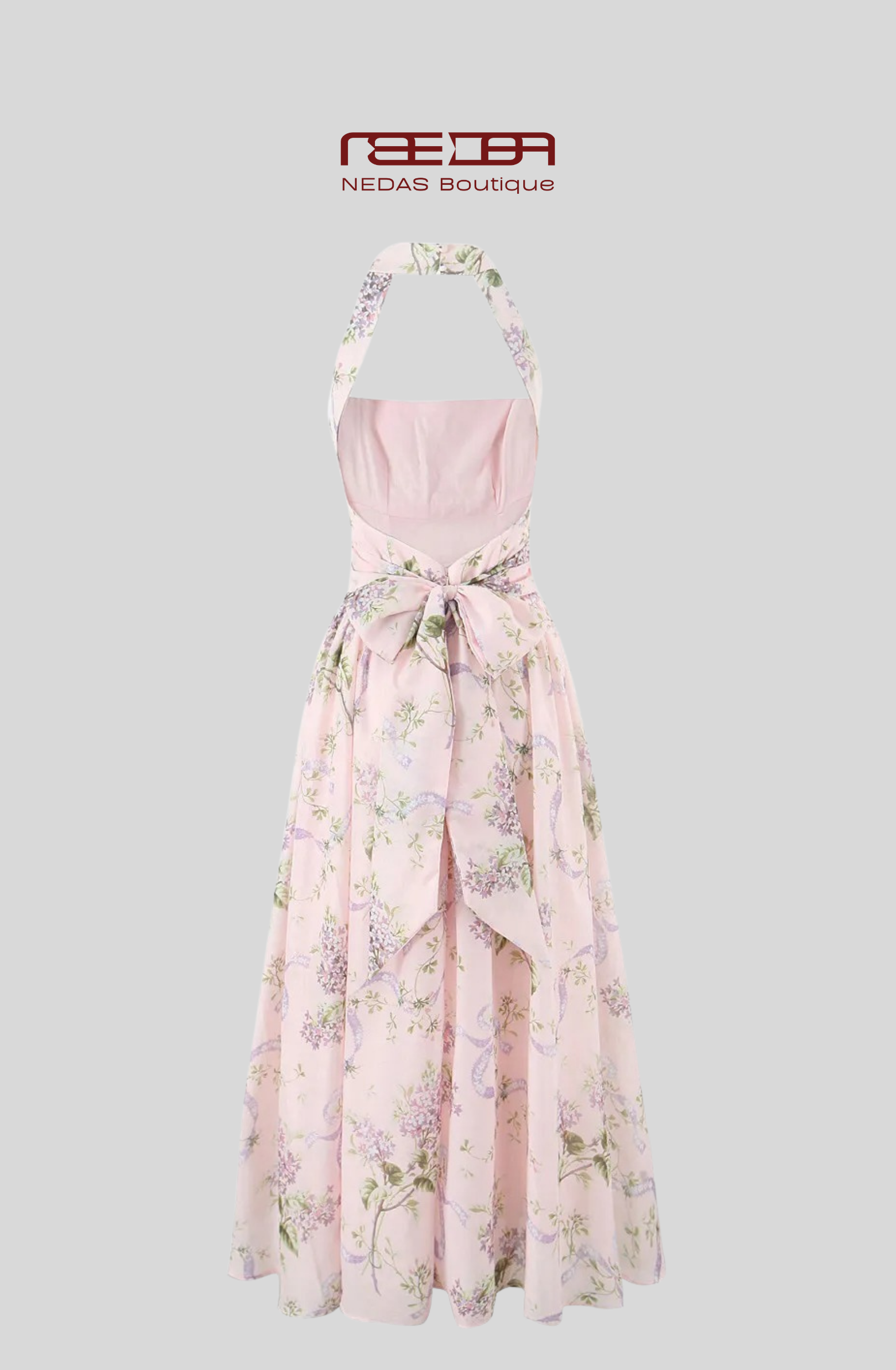 Tauche ein in die Romantik eines blühenden Gartens mit Romance in Bloom. Dieses traumhafte Maxikleid verführt mit seinem zarten Blumenmuster auf roséfarbenem Grund und einer schmeichelnden, femininen Silhouette. Der elegante Rückenausschnitt mit Schleifenbindung sorgt für eine verführerische Note, während der weich fließende Rock mit hoher Beinschlitzausarbeitung Leichtigkeit und Bewegung schenkt. Perfekt für besondere Anlässe, Sommernächte oder romantische Spaziergänge – ein Kleid, das pure Eleganz und verspielten Charme vereint.